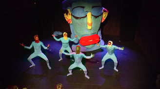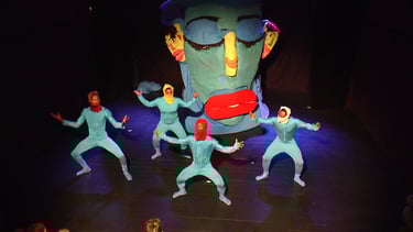 La Boule Bleue est un spectacle qui raconte la création des Hommes sur la terre et leur nature conflictuelle mais qui, grâce à une langue universelle, vont se réjouir de leur diversité. Fort de son message empreint d’optimisme, il a été récompensé par la Médaille d’Or aux 8ème Jeux de la Francophonie en 2017.